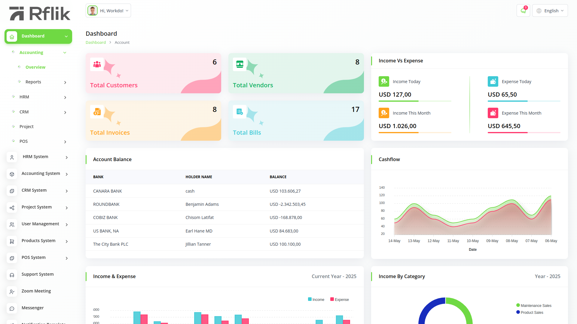 Rflik ERP by Reydaar Solutions is a complete business management software with integrated Project, Accounting, HRM, CRM & POS modules. Simplify operations, boost productivity, and grow faster.